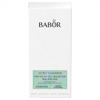 BABOR hat die natürlichen Reinigungskräfte von Wasser und Öl miteinander verbunden und eine revolutionäre, mehrfach prämierte 2-Phasen Tiefenreinigung entwickelt. Die sanfte Formel unterstützt eine intakte Hautbarriere und ein ausgeglichenes Mikrobiom. Die besondere Kombination hochwertiger, natürlicher Öle aus Soja, Sesam und Erdnuss mit hydrophiler Eigenschaft, löst alle Arten von öl- und wasserlöslichen Schmutzpartikeln und bewahrt dabei den natürlichen Lipidmantel der Haut. Mit Vitamin E, Bisabolol und Quillaja-Extrakt, der wie ein „Schmutzmagnet“ wirkt. Zusammen mit dem auf den individuellen Hauttyp abgestimmten Pflegezusatz Phyto HY-ÖL® Booster wird die Haut vor negativen urbanen Umwelteinflüssen geschützt und zeigt sich aufnahmefähiger für die nachfolgende Pflege. Ergebnis: porentief reine und zarte Haut ohne Spannungsgefühle oder ölige Rückstände. Der Pflegezusatz für die BABOR HY-ÖL® 2-Phasen Reinigung bei Mischhaut und öliger Haut. Bereits bei der Reinigung wird eine intakte Hautbarriere und ein ausgeglichenes Mikrobiom unterstützt. Ausgewählte Extrakte aus Salbei, Hamamelis und Bio- Holunderblüte haben klärende und adstringierende Eigenschaften. Ein Proteinextrakt aus dem Moringa Samen schützt die Haut vor negativen urbanen Umwelteinflüssen. Der ausgleichende Duft entspannt die Sinne. Ergebnis: porentief reine, geklärte und ausgeglichen wirkende Haut.