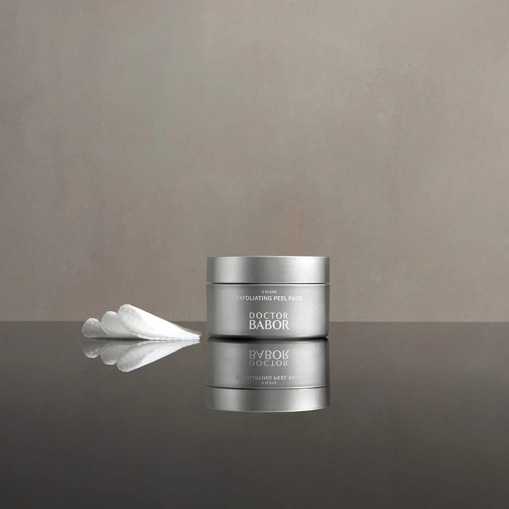 Die BABOR Exfoliating Peel Pads sind Haut verfeinernde Peeling Pads mit Fruchtsäure. Entfernen abgestorbene Hornschüppchen und in der Haut sitzende Verunreinigungen und erhöhen das Feuchtigkeitsbindevermögen der Haut und kurbeln die Hauterneuerung an. Sehr praktisch und angenehm in der Anwendung.