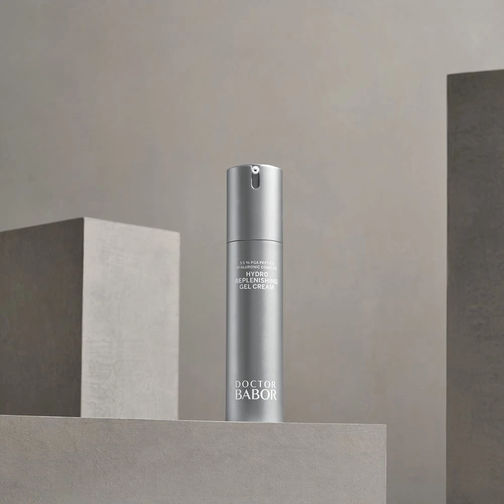 Die BABOR Hydro Replenishing Gel Cream hat einen wirkungsvollen Komplex aus multi-molekularen Hyaluronsäuren, Peptiden und natürlichen Zuckern zur Steigerung der Hautfeuchtigkeit sowie zur Unterstützung der hauteigenen Hyaluron-Synthese und des NMFs. Die Feuchtigkeitsverteilung wird optimiert und der transepidermale Wasserverlust vermindert. Ergebnis: Durchfeuchtetes und glatteres Hautbild.