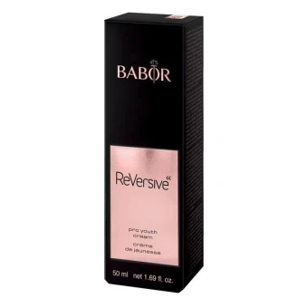 Schenkt der Haut jugendliche Strahlkraft. Dank REVERSIVE wirkt die Haut sichtbar straffer, fester und glatter. Sie zeigt sich intensiv durchfeuchtet und geschmeidiger. Das Hautbild erscheint verfeinert, ebenmäßiger und strahlender. Für einen perfektionierten, jugendlichen Teint. Die BABOR Laboratorien haben den Pro Youth Complex gegen die häufigsten Zeichen der Hautalterung – wie Elastizitätsverlust, Faltenbildung und fehlende Ausstrahlung – entwickelt.